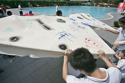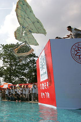(Above)Students makes preparation with their craft. (Below) the craft is pushed off.