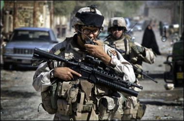 foot patrol through southern Baghdad. Twelve Iraqi building workers were