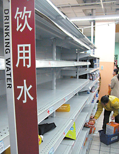 Bottled water is sold out in almost all