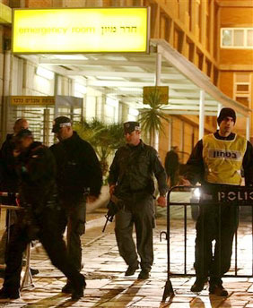 where Israeli Prime Minister Ariel Sharon is hospitalized, in Jerusalem,