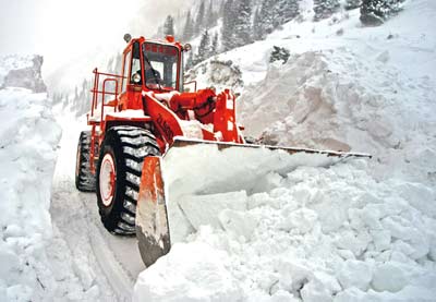 A workers clears snow on a highway after a snowslide hit the region in Yili Prefecture of the southwest China's Xinjiang Uygur Autonomous Region, January 11, 2005. Authorities said the heavy snowfall has affected some 622,000 people in Altay, Tacheng and Ili prefectures of northern Xinjiang, stranding 224,800 people and killing 9,234 head of livestock. [Xinhua]
