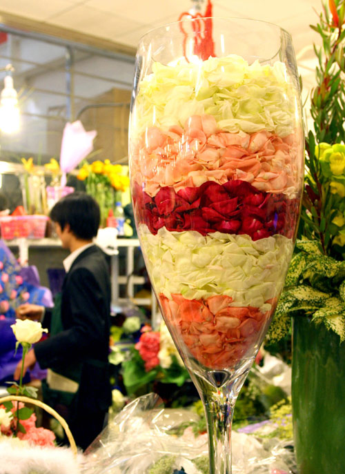 A goblet full of flowers is shown in a flower shop in Shanghai February 13, 2006. [Xinhua]