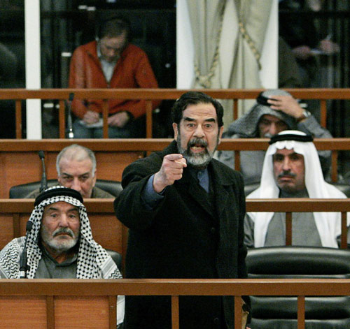 Former Iraqi leader Saddam Hussein gestures