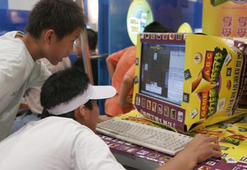 Chinese residents surf the web at an information technology fair in Shanghai, April 27, 2004. [Reuters]