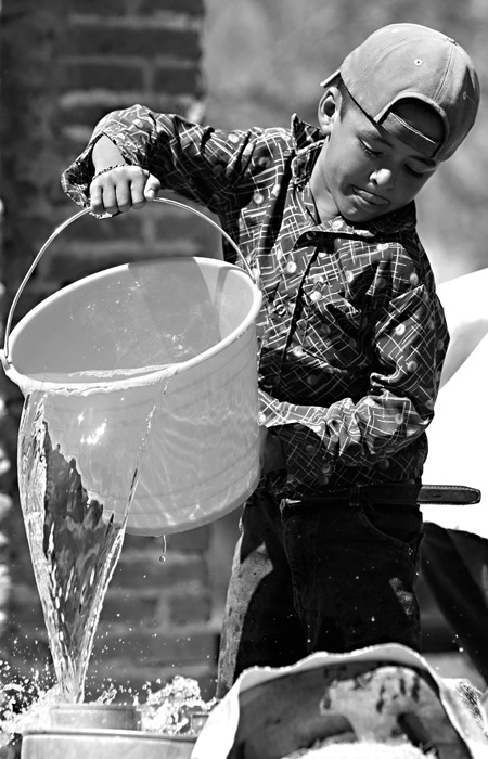 Felipe Ramirez, 9, pours water into a container before the 5 kilometre journey back to his village of Xaxamayo in the Mexican state of Puebla. Xaxamayo has no running water supply so villagers, often children, have to walk many kilometres to collect water. (REUTERS) |