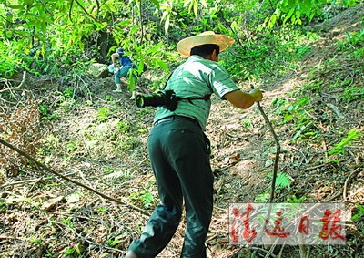 17日夜晚,記者在英德三防辦守候到了18日凌晨。按預(yù)計(jì),洪峰應(yīng)該在12時(shí)前達(dá)到最高峰。17日晚12時(shí)前,洪峰卻有所下降,水位為33.8米。然而,到了18日早上7時(shí),北江水位猛然漲到34.19米,到了本次洪水最高水位。英德馬上進(jìn)入最緊急狀態(tài),更加嚴(yán)密地巡堤。8時(shí)15分,巡堤員報(bào)告險(xiǎn)情:西岸防洪堤北段斷崗山段發(fā)現(xiàn)管涌、跌窩。記者18日早晨8時(shí)40分,到英德三防辦獲悉這一險(xiǎn)情,隨即趕到現(xiàn)場(chǎng)。