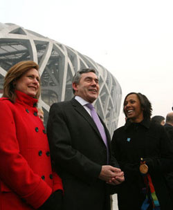 1月19日上午,英國首相布朗參觀2008年北京奧運會主體育場“鳥巢”。