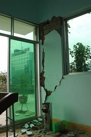 “5.12”特大地震造成廣元市糧食局辦公樓多處墻體垮塌,樓道橫梁多處斷裂,墻體嚴重裂縫,整幢大樓嚴重傾斜,成為“5.12”特大地震廣元城區(qū)毀壞最嚴重的辦公大樓。地震發(fā)生當日,該幢辦公大樓已關閉停用,該局啟用3間機關小車車庫作為臨時應急辦公地。5月15日,經城建部門鑒定,廣元市糧食局辦公大樓為地震損壞報廢危房,損毀建筑面積3800平方米,直接經濟損失532萬元(當時造價)。