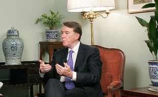 中國日報網環球在線消息:率領高端商務代表團到訪中國的英國商務大臣彼得?曼德爾森9月7日在英國大使官邸接受了中國日報記者的專訪。曼德爾森表示,此行希望加強與中國在經濟、金融和貿易等領域的全面合作,促進英國經濟恢復,擴大中國進出口,實現“雙贏”。 此次訪華是曼德爾森的第四次中國之行,他自稱是中國的老朋友。在他擔任歐盟商務代表期間,與中國商務部長陳德銘多次一起共事,特別是中國加入世貿組織談判。 提起經濟危機后中國的恢復速度,曼德爾森贊嘆道:“中國是恢復最快的國家,我們歡迎這樣的結果。中國的發展會給世界帶來繁榮。” 對于中國和中國文化,曼德爾森有自己的理解。他說:“與中國人打交道的時候,如果你表現出誠意、友情和幽默感,那么交流起來將會非常愉快。” 曼德爾森表示盡管中國有自己獨特的文化、獨特的國情,但是只要雙方都遵守一定的規則,秉著信任、開放和公平,那么國家間的交往并沒有障礙。 (環球在線:于盟)