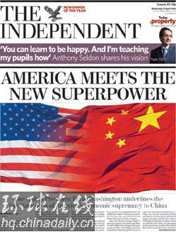 環球在線消息:英國《獨立報》4月19日頭條消息:美國會晤新的“超級大國”。