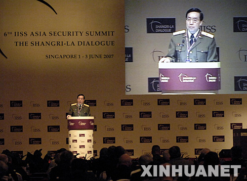 6月2日,中國(guó)人民解放軍副總參謀長(zhǎng)章沁生中將在新加坡舉行的第6屆亞洲安全大會(huì)上演講。為期3天的第6屆亞洲安全大會(huì)6月1日晚在新加坡香格里拉大酒店拉開(kāi)帷幕,包括中國(guó)在內(nèi)的26個(gè)國(guó)家和地區(qū)的國(guó)防部長(zhǎng)、高級(jí)防務(wù)官員及安全專家出席會(huì)議。新華社記者張永興攝