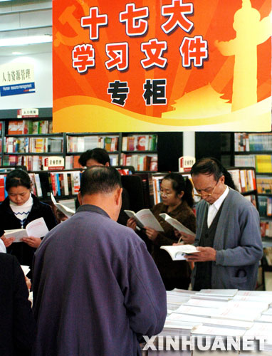10月29日,昆明市民在昆明書城挑選十七大報告單行本。當日,10萬冊十七大報告單行本正式在昆明市發行,當地群眾踴躍購買。新華社記者 鄒崢攝