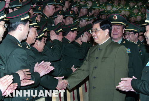 11月4日,中共中央總書記、國家主席、中央軍委主席胡錦濤會見第二炮兵第七次黨代會代表。