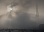 當地時間2014年3月13日,英國倫敦,大霧籠罩的泰晤士河。
