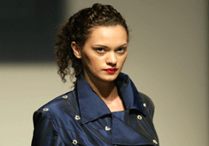 A model presents a creation by a Bosnian fashion designer during Fashion Week in Sarajevo May 5, 2006 .