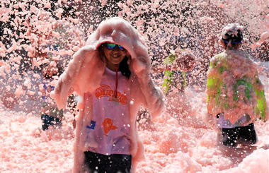 People take part in bubble run in Beijing