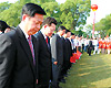 French Senate President Christian Poncelet made a special trip to meet Chinese torch bearer Jin Jing after arriving in Shanghai on Monday.