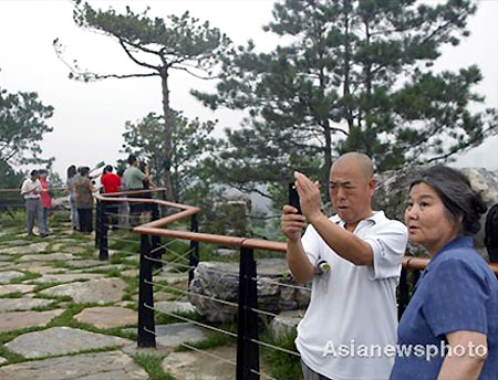 A local resident takes pictures in the Olympic Park, enjoying the fresh air and open spaces in Beijing's Olympic heartland. [Asianewsphoto]