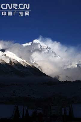 Mt. Qomolangma after an overnight snow, May 4, 2008. [cnr.cn]