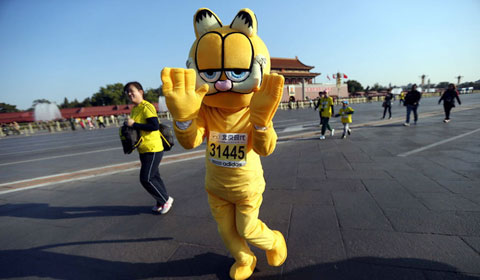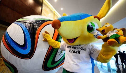 Students from the School of Communication and Art of the University of Sao Paulo perform a skit titled "Blind Ones" as a protest against consumerism inside a shopping mall of Natal, capital of Rio Grande do Norte state, December 9, 2013. The group plans to take the protest to cities in Europe and North America in 2014. [Photo/Agencies]