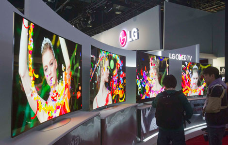 Joe Stinziano, executive vice president of Samsung Electronics of America, introduces a 105-inch, curved UHD television during the Consumer Electronics Show (CES), in Las Vegas, Nevada, January 6, 2014. [Photo/Agencies]