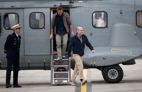 Pro-Russian militants try to help their wounded comrade at the gates to a National Guard base, blocked by trucks in Mariupol, Ukraine, early April 17, 2014. Three pro-Russian militants died and 13 were wounded when Ukrainian troops repelled an attack on the National Guard base in the Black Sea port of Mariupol, Ukraine's interior minister said Thursday. [Photo/icpress.cn]