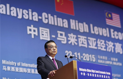 Premier Li Keqiang addressed the Malaysia-China High Level Economic Forum on the morning of Nov 23 in Kuala Lumpur, Malaysia.