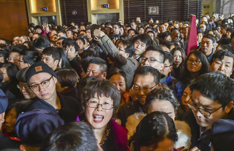 Singer Taylor Swift poses backstage with her awards for Best Music Video for "Bad Blood", Album of the Year and Best Pop Vocal Album for "1989" during the 58th Grammy Awards in Los Angeles, California February 15, 2016.[Photo/Agencies] |