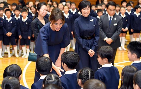 US President Donald Trump (R Center) and his wife Melania Trump (L Center) arrive at the Osan Air Base in South Korea Nov 7, 2017.? [Photo/Xinhua] |
