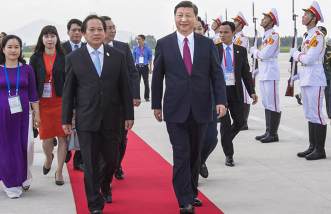 When Xi, also general secretary of the Communist Party of China Central Committee, arrived at the palace, he was greeted by Vietnamese National Assembly Chairwoman Nguyen Thi Kim Ngan, at the entrance and welcomed by representatives of Chinese enterprises and Vietnamese young people.