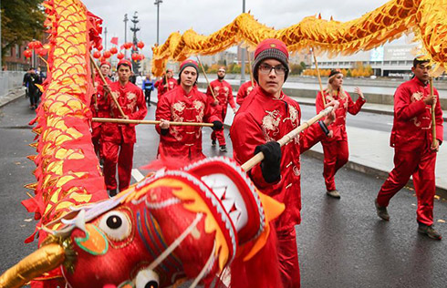 Parade for 2017 World Festival of Youth and Students held in Moscow